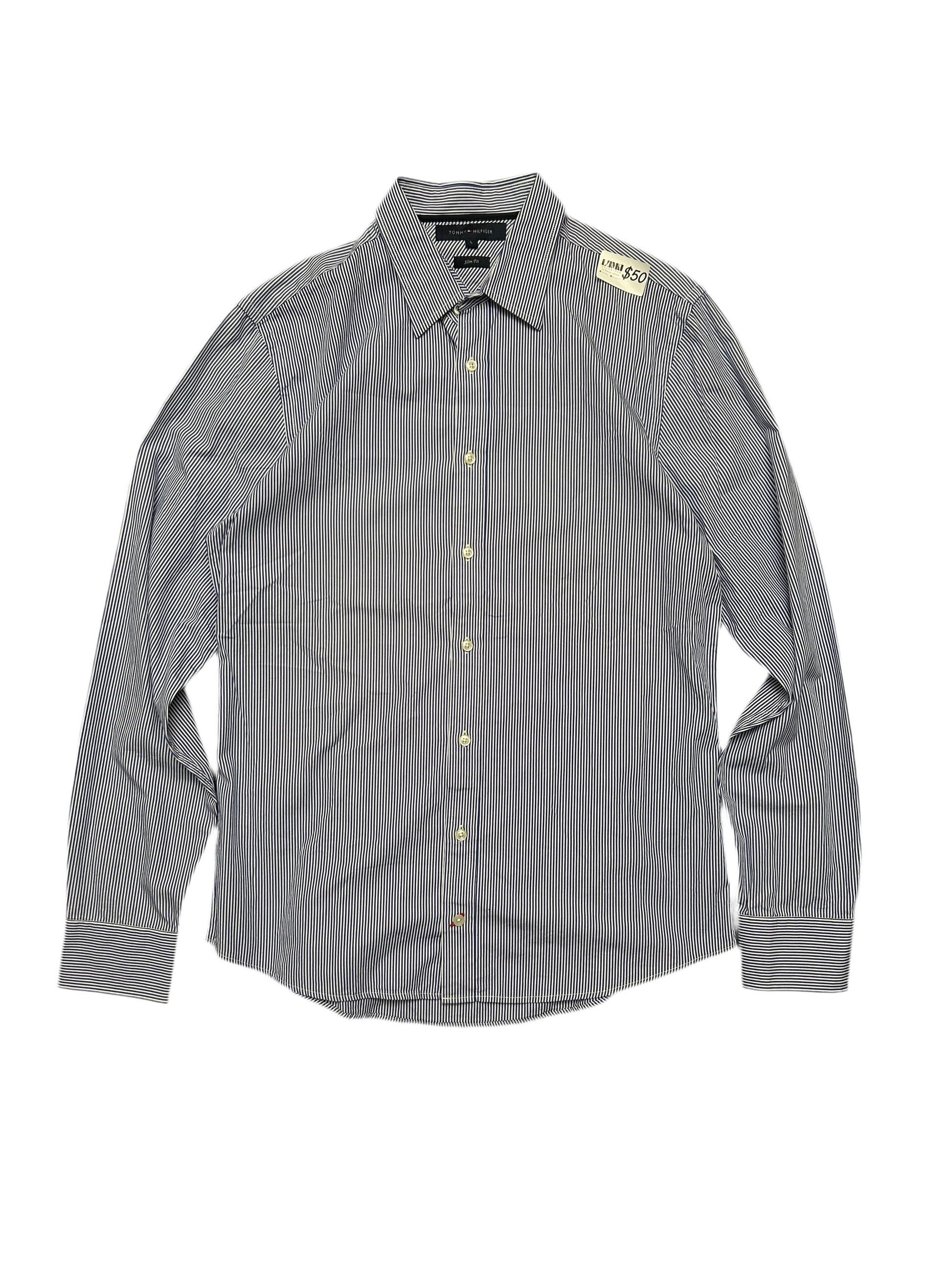 Tommy Hilfiger Pinstripe Long sleeve Large Slimfit It's made with high-quality materials and expert craftsmanship, ensuring a sophisticated and professional look for any occasion.