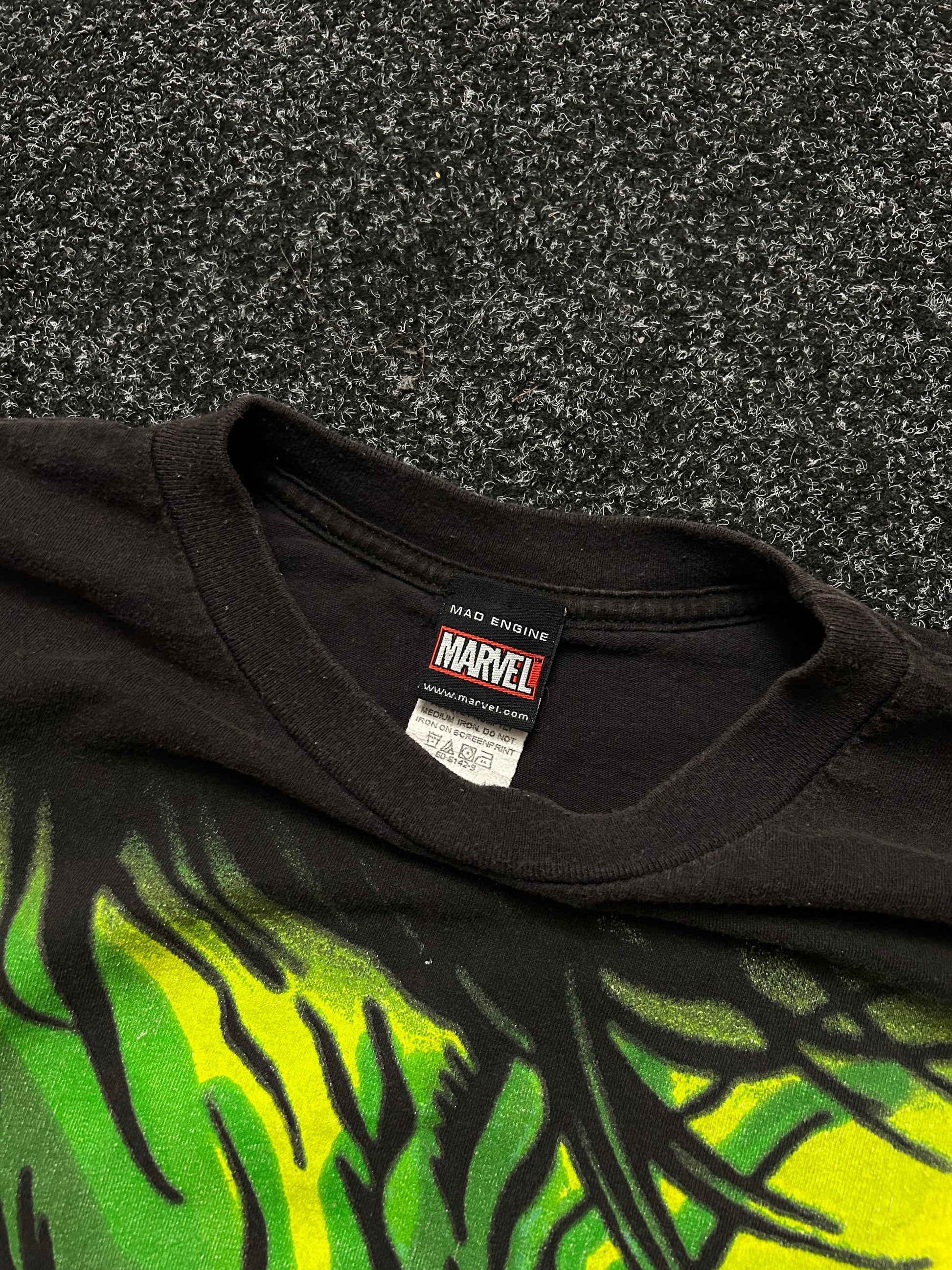 Vintage 2002 Marvel Comics The Incredible Hulk Graphic T-Shirt Mega Print Glitter XL Mad Engine Tag Black
