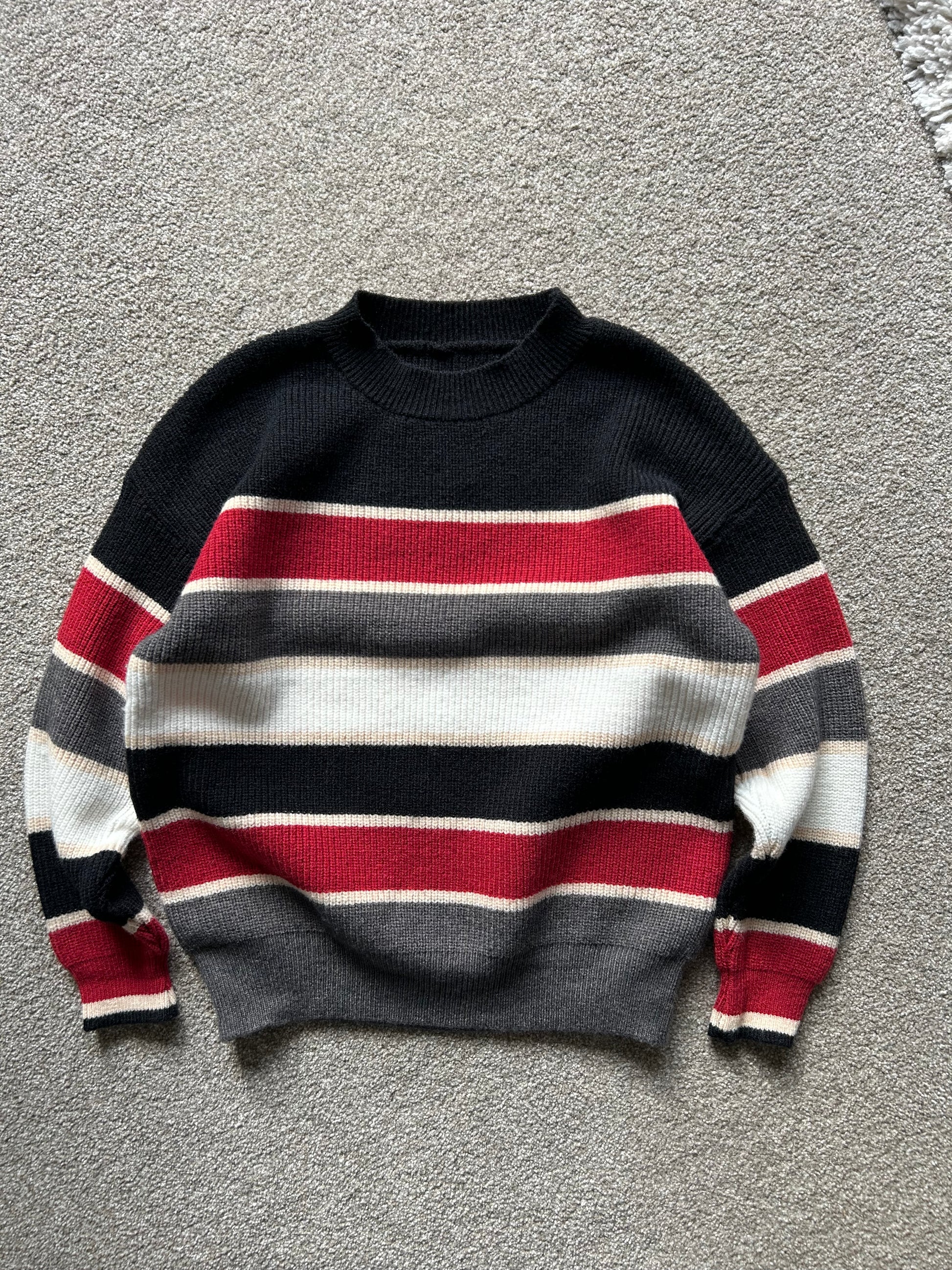 Vintage Wool Hand Knitted Sweater Stripe Medium